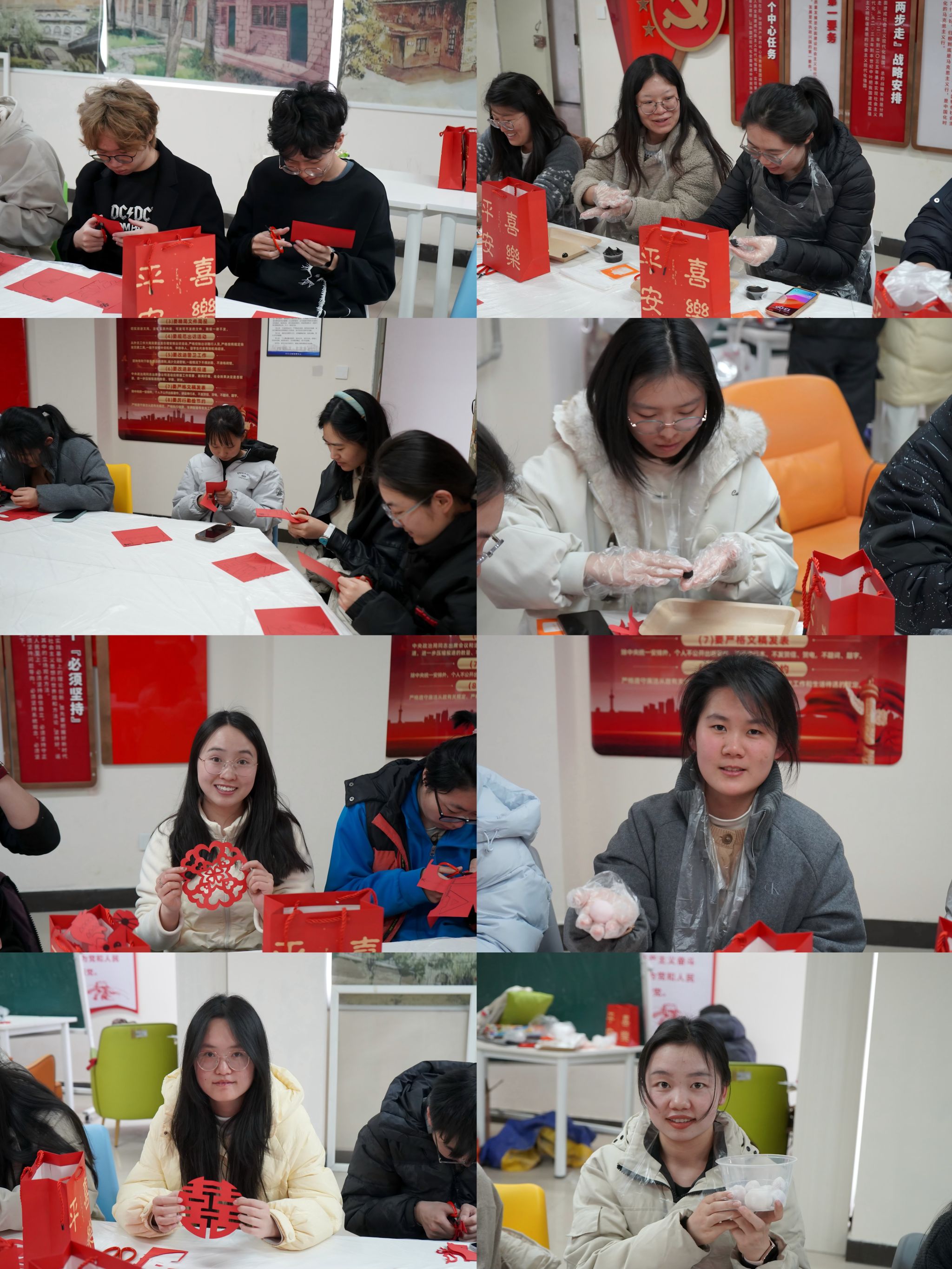 在传统手工体验环节,师生们挽起袖子,揉面团、包馅料、剪窗花,一双双巧手捏出圆润饱满的汤圆,剪出寓意吉祥的窗花图案,糯米粉的清香与红纸的艳丽交相辉映。大家在协作中感受传统手艺的温度,体悟团圆祥和的文化内涵,在动手实践中加深了对中华优秀传统文化的理解与认同,进一步增强了文化自信与民族自豪感。